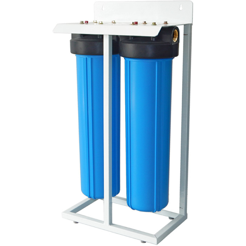 Διπλή φιλτροθήκη Big Blue 20″ – 1″ με ορειχάλκινο σπείρωμα και compact μεταλλική βάση