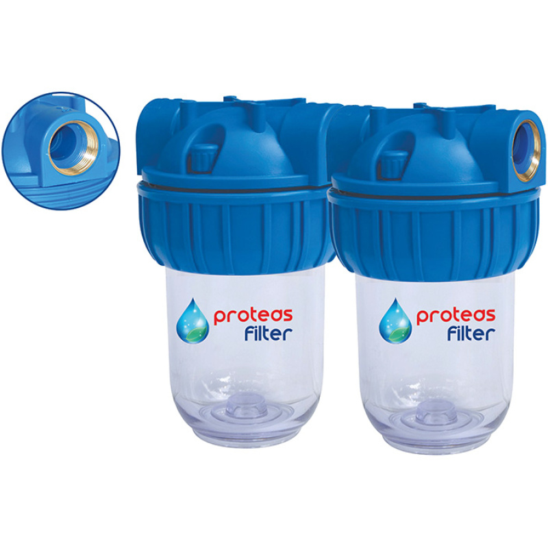 Διπλή φιλτροθήκη τριών μερών 5″ – 1″ κεντρικής παροχής